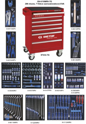 Kingtony 286 részes, 7 fiókos erősített szerszámoskocsi EVA 934-010MRV-7G