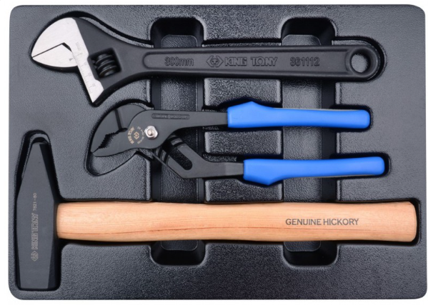 Tartalma: svédkulcs 3611-12; vízpumpafogó 6511-10; kalapács 7821-80 Tálcaméret #4 (375x265mm)