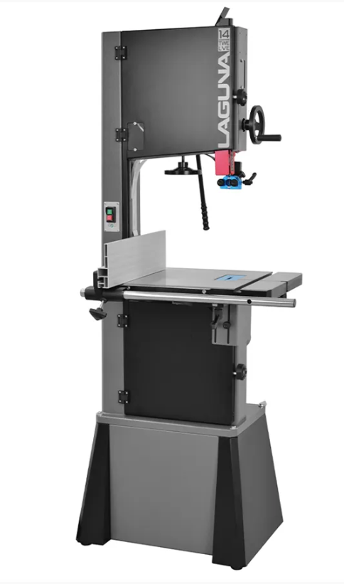 Az IGM Laguna 1412 szalagfűrész fő támasza egy szilárd háromszög alakú keret és egy erőteljes, 1,3 kW teljesítményű aszinkronmotor. A csiszolt öntöttvas 54x 40 cm méretű munkaasztal a nagyobb darabok vágásánál is stabilitást biztosít. A munkaasztalt -7° - +45° között lehet dönteni. A párhuzamos masszív, magas vonalzót könnyű beállítani és két helyzetbe (vízszintes és függőleges) lehet pozícionálni. A tömör öntött kerekek kiegyensúlyozottak és poliuretán szalaggal vannak felszerelve a kerék kerülete körül. A szalag úgy van tervezve, hogy a magasabb hőfokot is kibírja és az élettartama hosszabb, mint a hagyományos gumikerekek esetében. A szalag felső vezetőjének csigás hajtóműve maximális stabilitást biztosít a legmagasabb vágási magasságnál is.