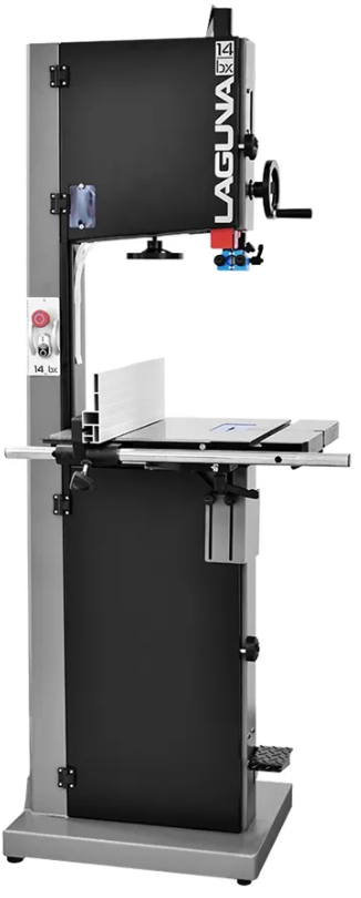 Az IGM Laguna 14 BX szalagfűrészgép nehéz, stabil kerettel és egy erős 1,9 kW aszinkronmotorral van felszerelve. A csiszolt öntöttvas 54x 400 mm méretű munkaasztal a nagyobb darabok vágásánál is stabilitást biztosít. A munkaasztalt -7° - +45° fok között lehet megdönteni. A párhuzamos masszív magas vonalzót könnyű beállítani és két helyzetbe (vízszintes és függőleges) lehet pozícionálni. A tömör öntött kerekek kiegyensúlyozottak és poliuretán szalaggal vannak felszerelve a kerék kerülete körül. A szalag úgy van tervezve, hogy a magasabb hőfokot is kibírja és az élettartama hosszabb, mint a hagyományos gumikeréknek. A szalag felső vezetőjének csigás hajtóműve maximális stabilitást biztosít a legmagasabb vágási magasságnál is. A fűrészgép egyszerű megállítására az alsó kerék tárcsafékkel van ellátva, amely a pedálra való rálépéssel aktiválódik.