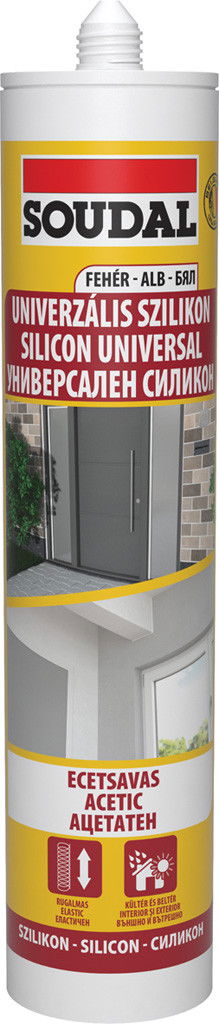 Ecetsavas univerzális építőipari szilikon, tömítésre és réskitöltésre, kerámia, üveg, fém csatlakozási pontokhoz, hagyományos építőanyagokhoz.